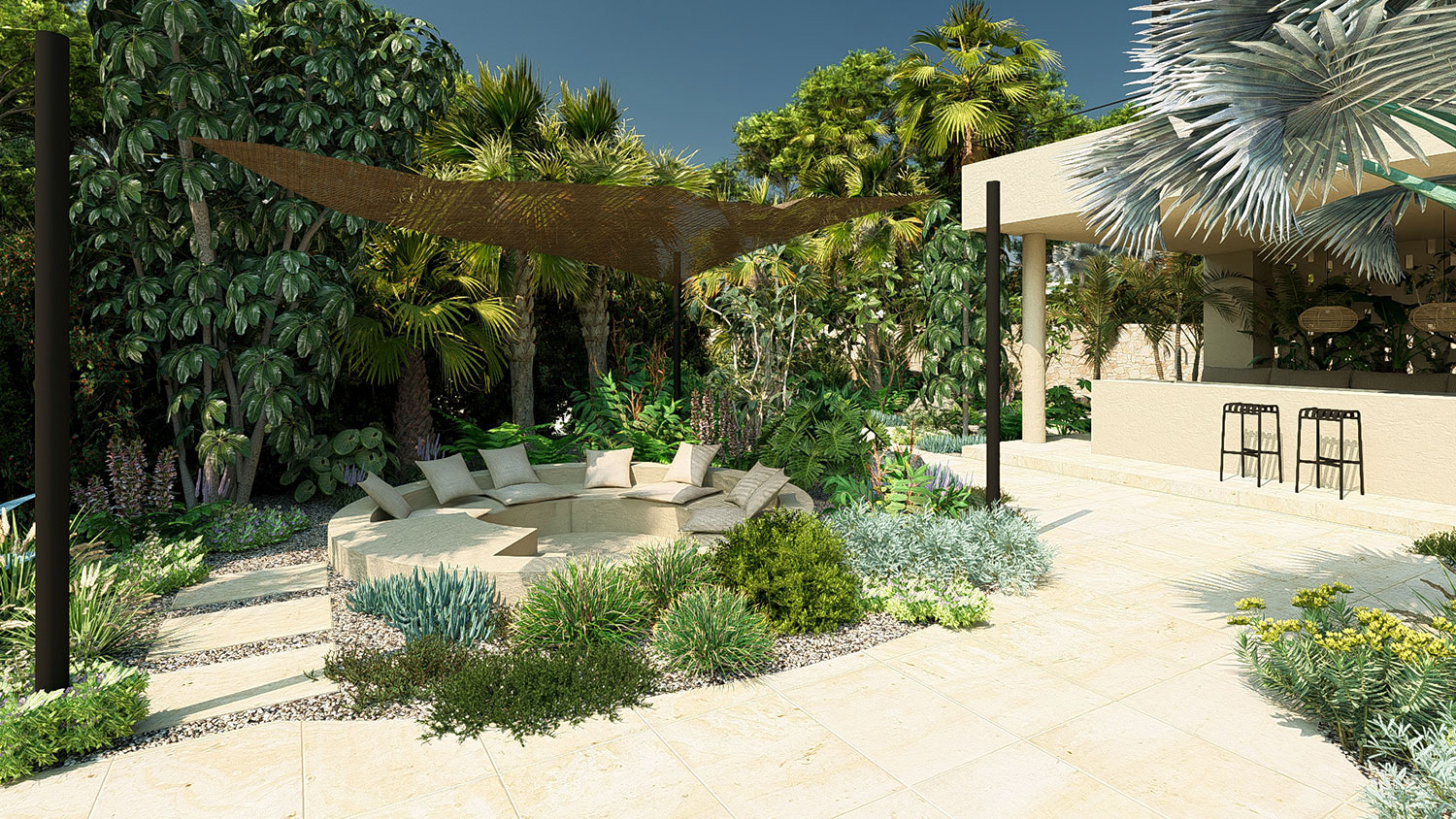 Diseñamos paisajes únicos para hoteles y alojamientos turísticos, villas de alto standing, espacios gastronómicos y fincas rústicas, creando entornos que combinan identidad, elegancia natural y conexión con el entorno.